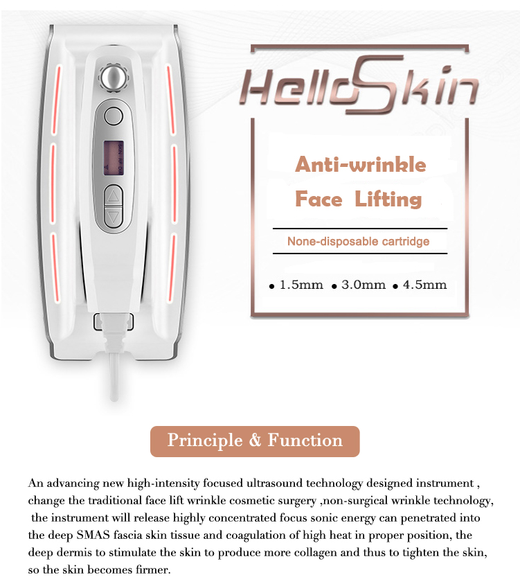 Teoria HIFU: Utilizati ultrasunete cu energie intensa, focalizand pozitia tratamentului, astfel incat tesutul pielii sa creeze termic si sa faca celule de frecare de mare viteza pentru a stimula colagenul. Efectul de caldura nu va afecta epiderma, deoarece tratamentul rapid si accesul direct la site-ul de tratament in intervalul 0-0,5 secunde, fara atingerea tesutului inconjurator si poate fi trecut direct in sistemul de membrane de tendon superficial (SMAS), astfel incat acesta poate fi realizat cu o piele ferma in timp ce trageti stratul muscular, cu o fata subtire pana la efectul progresiv.